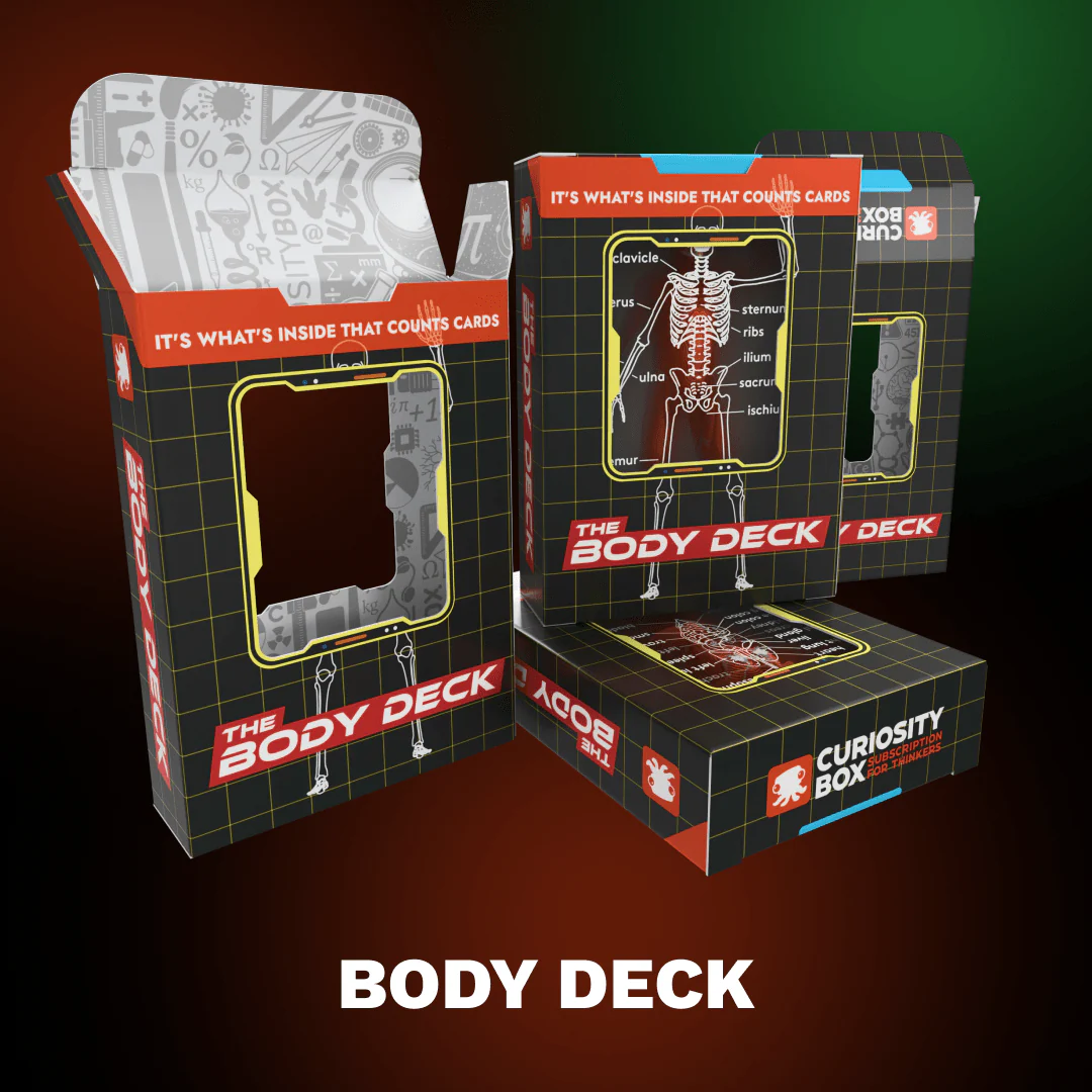 The Body Deck – This set of transparent playing cards gives the illusion of a human body trapped inside! 52 coronal slices of the human body reimagined as playing cards. And yes, the hearts are in the heart.Â